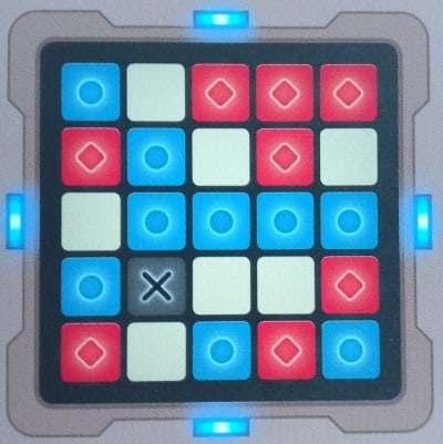 Następnie Mądrale losują mapkę. Mapka to nic innego jak niewielki kwadrat 5x5, na którym niektóre pola są zaznaczone na niebiesko, niektóre na czerwono, niektóre na szaro, a jedno - na czarno. Pól niebieskich jest zawsze o jedno mniej lub o jedno więcej, niż czerwonych - większa grupa jest dodatkowo oznaczona na obwodzie mapki.