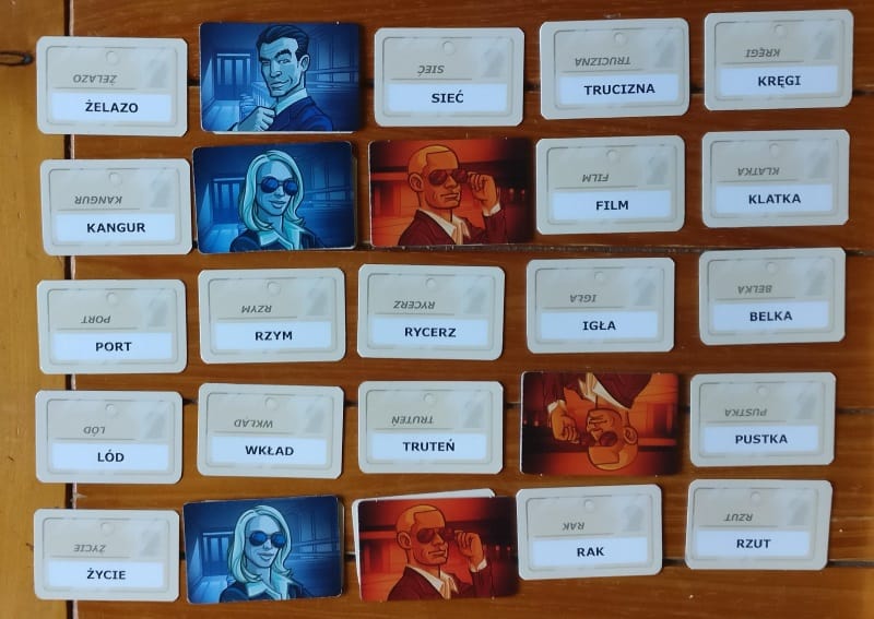 Na stole układa się dwadzieścia pięć słówek, w kwadracie 5x5. Następnie wybiera sie dwie dwuosobowe drużyny; w każdej drużynie jest jeden Mądrala i jeden Głupek; Mądrale siedzą obok siebie po jednej stronie stołu, a Głupki - naprzeciwko. Oprocz tego ustala się która drużyna to Czerwoni, a która - Niebiescy.