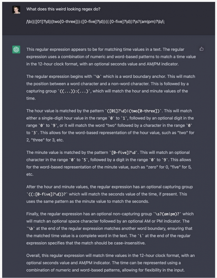 A tutaj GPT objaśnia tajemnicze (i dość skomplikowane) wyrażenie regularne:
