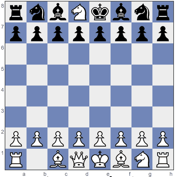 - Układ planszy jest legalny; da się do niego dojść grając partię szachów według dzisiejszych oficjalnych reguł.