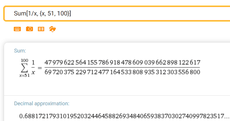 http://www.wolframalpha.com/input/?i=Sum%5B1%2Fx,+%7Bx,+51,+100%7D%5D