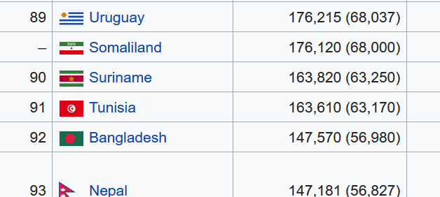 2 Potem do zagadki przystąpił Rzast, stały Czytelnik co już niejedno tu widział. Niestety Rzastowi nieco pomyliły się rzędy wielkości, w związku z czym owszem, wyliczył 160, ale tysięcy. Z niedużym hakiem. Idąc za tym ciosem u Rzasta padło na Tunezję, która faktycznie jest najbliżej 160,000 km kw.: