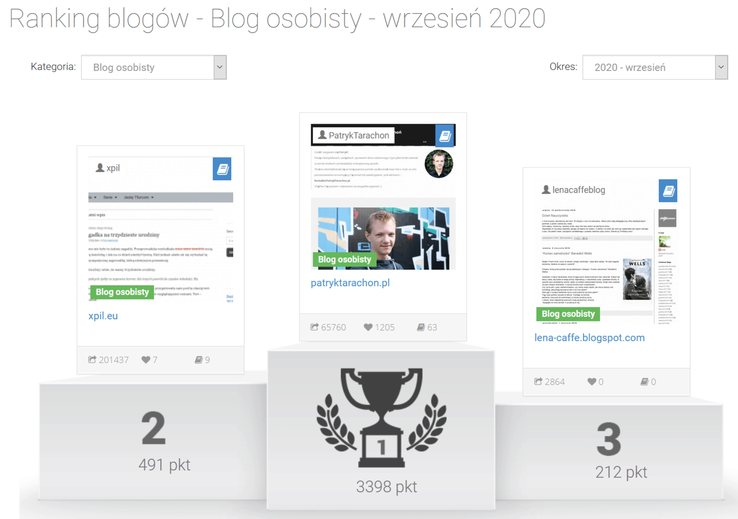 Trochę szkoda, bo kilka sympatycznych blogów tamtędy znalazłem, kilka razy udało mi się tam stanąć na podium (ostatni raz w zeszłym miesiącu), portal jest prościutki ale całkiem fajnie pokumany. Ma podrozdział z dyskusjami, ma śledzie i lajki... no takie jakby sołszjal midja z blogami w roli głównej.